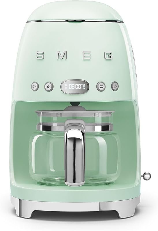 1. Smeg 50’s Retro Drip Coffee Maker – 10-Cup Glass Carafe, Auto Start, Keep Warm, Dual Strength Settings in Pastel Green